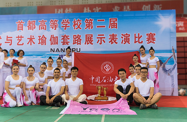 6月9日,首都高校第二届体式与艺术瑜伽套路展示表演赛在中国农业大学举行,由石大教工瑜伽爱好者协会15名教工组成的教工代表队荣获教工组甲组团体二等奖,由体育与人文艺术学院组建的“石代伽人”学生代表队在甲组中荣获团体一等奖、女子双人一等奖、男子双人一等奖、男女混双一等奖、女子单人二等奖和三等奖、男子单人三等奖等多个奖项,陈若莹获得“最佳形体”称号,石大团体获“最佳组织奖”。