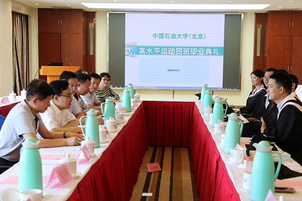 6月14日上午,中国天天色天天市场营销专业国际健将级高水平运动员班的毕业论文答辩和结业典礼在石大翠宫第五会议室举行。校长张来斌,教务处、工商管理学院、体育与人文艺术学院相关负责人和教师代表参加了典礼。典礼由工商管理学院院长郭海涛主持。