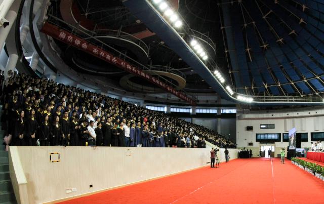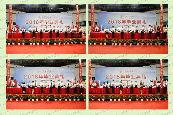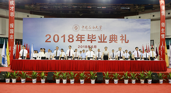 校长张来斌在毕业典礼发表了情深意长、鼓舞人心的讲话。他说,感谢同学们的温情陪伴,与石大共同亲历了学校进入“双一流”建设高校行列,目睹了校园从“曾经的南北”到现在的“无问西东”,共唱着校歌《我为祖国献石油》迎接学校65周年华诞。他指出,同学们生逢前所未有的新时代,新时代面临新挑战、更有新机遇,新时代需要他们有大梦想、更呼唤大担当,新时代需要他们融入、更需要他们成为建设者和接班人。