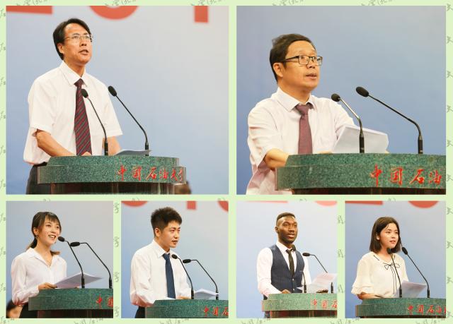 毕业本科生代表工商管理学院金甜甜、毕业研究生代表石油工程学院李亚涛、毕业留学生代表加纳籍留学生汪智东分别发言,深情讲述了自己对母校的热爱与感恩,抒发了对师长无私教诲的感谢,表达了对个人成长成才的美好期许;在校生代表地球科学学院阿比德感谢学长学姐的帮助与支持,祝福学长学姐未来鹏程万里,前程似锦;教师代表马克思主义学院庞昌伟教授表达了对毕业生深深的不舍,送上了深情的祝福;优秀校友代表路保平分享了自己的工作经历,寄语毕业生坚定信念、不忘初心、做奋发有为的石油人,脚踏实地、勇于创新、做干事创业的先锋,为美好的未来努力奋斗。
