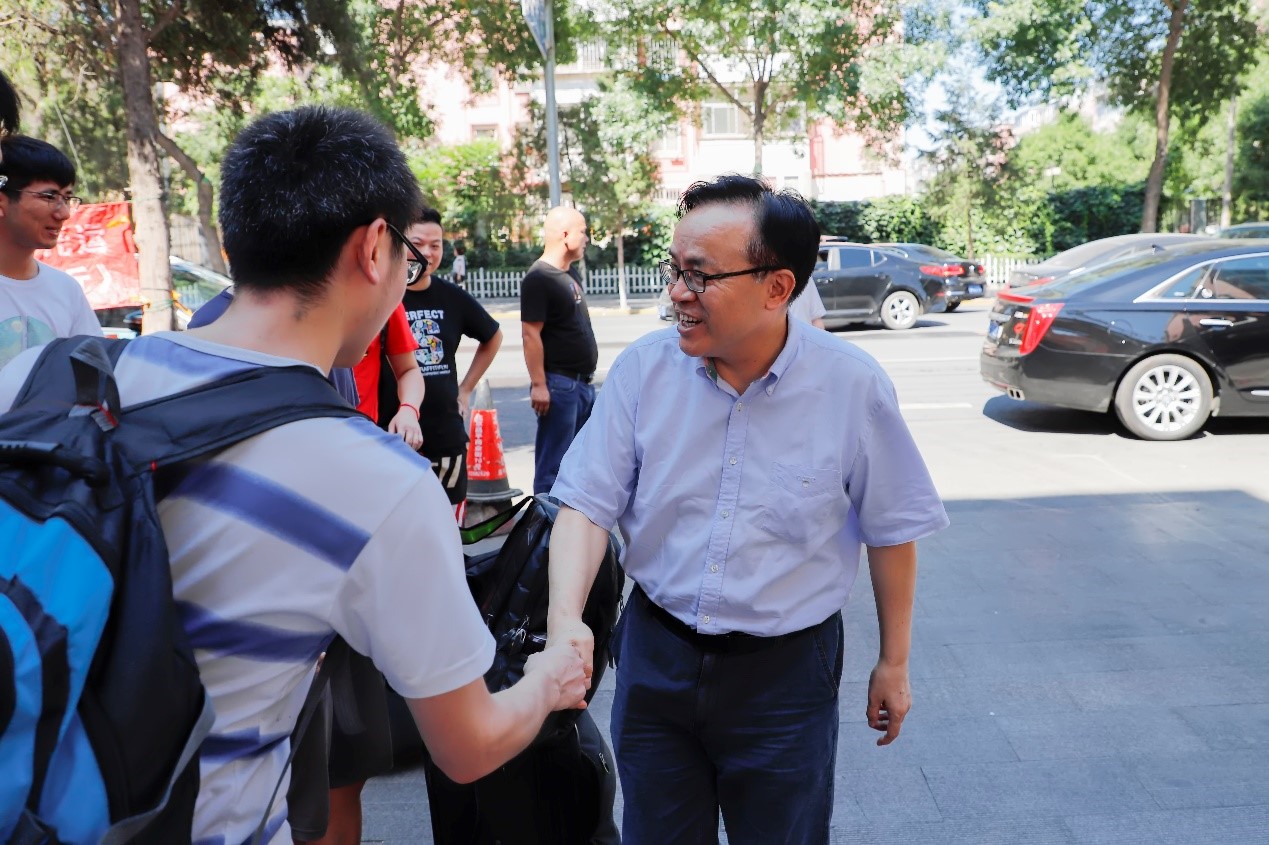在润杰公寓西门,张来斌与毕业生及家长亲切交谈,详细询问了毕业生的行程安排、就业状况、人生规划等,并与毕业生一一握手告别、合影留念,祝愿他们一路平安,希望他们常回母校看看。