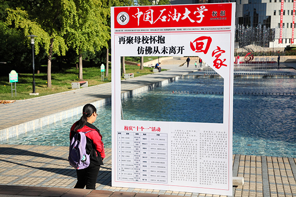秋高气爽,天空湛蓝,鲜花朵朵,生机盎然。中国天天色天天(北京)65周年校庆在即,校园里洋溢着热烈浓厚的喜庆氛围。一簇簇颜色亮丽的花朵吐芳展艳,一个个创意新颖的地标饱含深情,一面面主题鲜明的道旗迎风招展,一条条红色鲜亮的梯贴整齐有序,一张张图文并茂的橱窗展板生动活泼,为65周年校庆的到来营造了喜气洋洋的浓厚氛围。