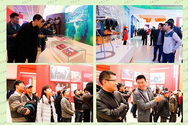 在讲解员带领下,师生们依次参观了6个主题展区。安徽小岗村18位农民按下包产到户“红手印”的雕塑,长征系列运载火箭、“天宫号”空间站等的模型,北京城市副中心、雄安新区总体空间格局和城市规划蓝图的沙盘……特别是展览中不时出现的“石油元素”——海洋石油钻井平台、陆上油气大型压裂车组、“一带一路”能源合作项目等等,不时吸引师生驻足,凝神观看展品,热切交流感想,直观地感受到了改革开放40年来,在中国共产党领导下中国人民用双手书写的国家和民族发展的壮丽史诗。