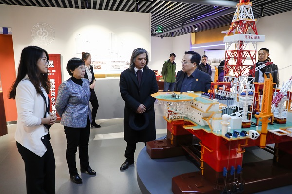 报告会前,吴为山参观了石大校园和校史馆等,并为石大题词。