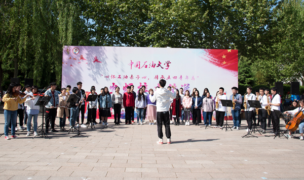 在祖国发展的新时代、石大征程的新起点上,石大青年师生高擎五四火炬,勇担时代重任,争做有为青年,勠力同心,齐心聚力,在实现中国梦的伟大实践中放飞青春梦想,在实现石油石化学科领域世界一流研究型大学的宏伟目标中贡献青春力量!