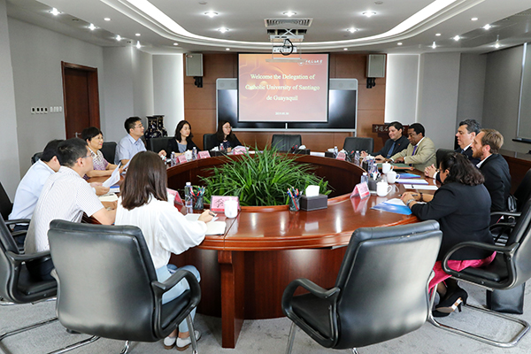 5月30日下午,厄瓜多尔瓜亚基尔圣地亚哥天主教大学(Catholic University of Santiago de Guayaquil)校长Mauro Toscanini Segale、厄瓜多尔驻华大使馆领事Javier Sanchez Lopez一行访问石大并签署合作备忘录。石大党委书记山红红会见了代表团,国际合作与交流处、国际教育学院、经济管理学院、外国语学院相关负责人等参加会见。