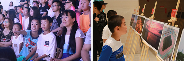 在主楼A座“风华艺苑”展厅,中小学生及家长参观了“我的视角‘瞰’祖国 我与祖国共成长”2019年全国大学生无人机航拍作品大赛优秀作品展,观看了无人机航拍的视角下祖国美丽壮阔的大好河山、高校青年学子家乡独特的自然景观和人文景观、高校校园丰富多彩的校园活动,感受了无人机航拍技术带给人们的视觉震撼以及所呈现的科技之美、人文之美。