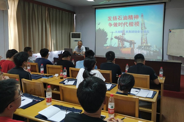 6月22日下午,南阳二机石油装备集团股份有限公司人力资源部党支部书记秦金德应邀为石大机械设计制造及其自动化2016级本科生作了课程思政教育讲座。他以“发扬石油精神,争做时代楷模”为主题,结合南阳二机集团的发展史,回顾了石油精神的形成过程和其中涌现出的英雄人物,讲述了南阳二机集团的艰苦奋斗历程及科研成果,鼓励学生继续发扬“三老四严”的作风,继承先辈的红色基因,弘扬石油精神,为石油工业的发展贡献青春力量。