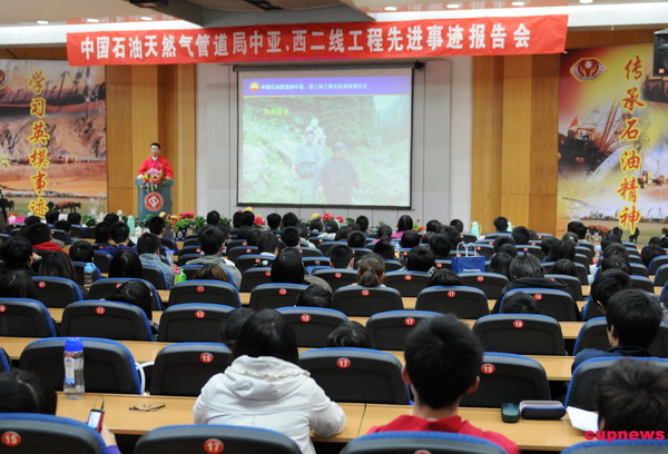管道局中亚、西二线工程先进事迹报告团作客我校阳光讲坛