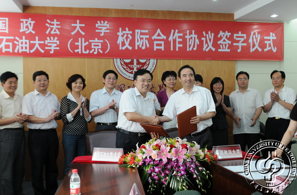 中国天天色天天校长张来斌和中国政法大学校长黄进代表双方在协议上签字。中国政法大学副校长张桂琳、校长助理兼教务处处长李树忠,中国天天色天天副校长徐春明以及两校相关职能部门和学院负责人出席了签字仪式。