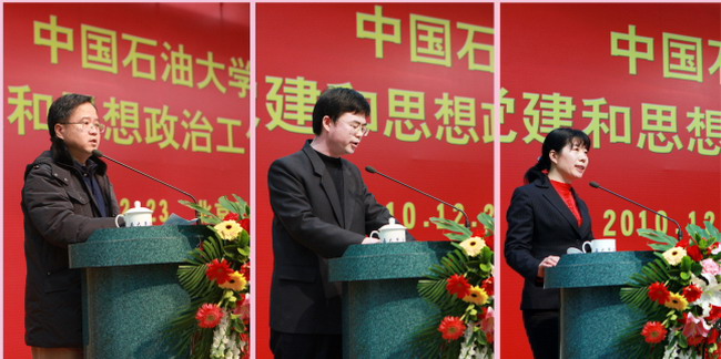 校党委书记蒋庆哲做了题为“不断提高学校党建和思想政治工作科学化水平,为建设石油石化学科领域世界一流研究型大学提供坚强保障”的大会报告,从党的思想理论建设、领导班子和干部队伍建设、基层党组织建设和党员队伍建设、党风廉政建设、大学生思想政治工作、和谐校园建设等方面,对“十一五”期间学校党建和思想政治工作做了全面的回顾,总结了五年来所取得的主要成绩与经验。