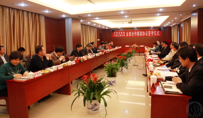 签字仪式前,铜陵市领导一行还参观了学校油气资源与探测国家重点实验室。