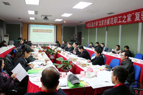 11月29日下午,以原北京市教育纪工委书记高云华为组长的验收专家组一行12人莅临石大,对“北京市模范职工之家”进行复验。出席验收工作会议的有学校党政领导、第四届教代会主席团成员以及工会委员会委员、工会干部以及教师代表。评审会由北京市教育工会常务副主席刘欢主持。