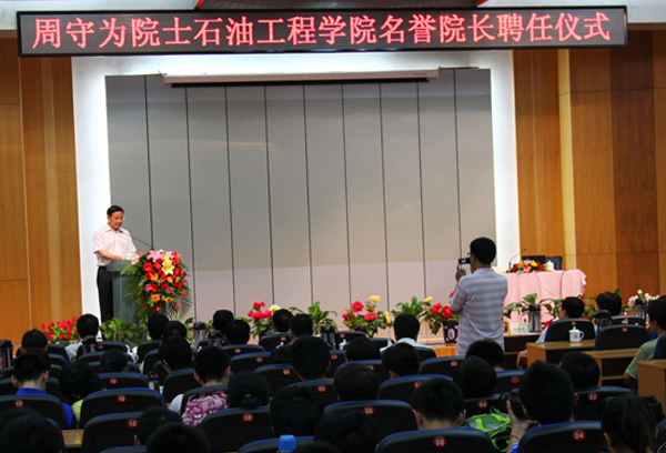 6月15日下午,中国天天色天天在翠宫报告厅隆重举行周守为院士石油工程学院名誉院长聘任仪式暨学术报告会。中国海洋石油总公司人力资源部副总经理陈和志、科技发展部副总经理刘一峰,校党委书记蒋庆哲、校长张来斌、石工学院和相关部门负责人出席仪式。仪式由副校长张士诚主持。石油工程学院400余名师生参加了报告会。