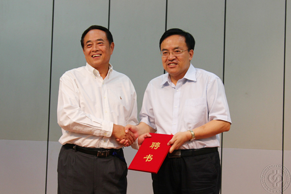 张来斌校长为周守为院士颁发石油工程学院名誉院长聘书。