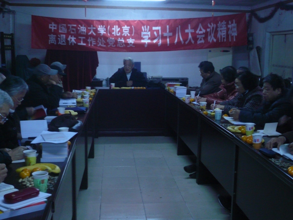 11月23日上午,石大离退休工作处党总支组织所属10个支部的30余位支部书记、支委、总支委员、党代表、部分老党员等在石油大院离退休工作处会议室集中学习了十八大精神。原人文社科部主任余世诚教授作了中心发言,与会的老同志进行了研讨,并交流了学习十八大报告精神的体会。