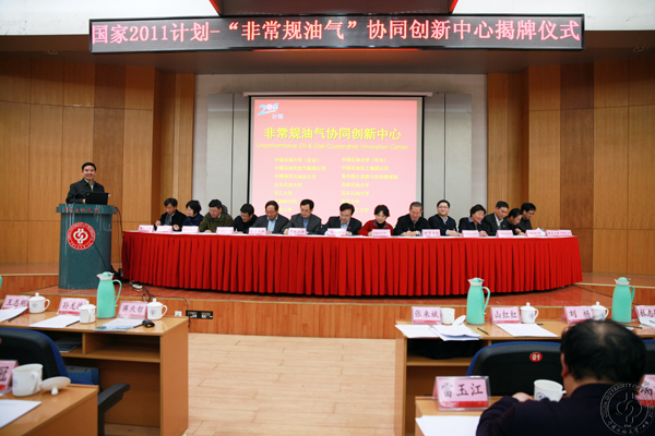 “非常规油气协同创新中心” 14家参与单位代表共同为中心揭牌