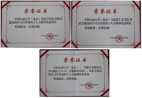 石大荣获北京高校学习宣传党的十八大精神评选活动多项表彰