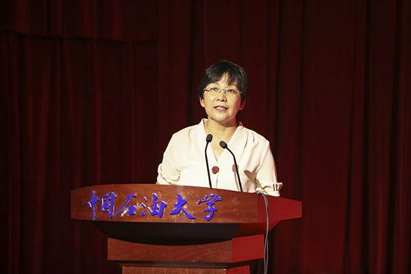 荣休教职工代表梁华庆教授发表了感言,感恩学校的培养,祝愿学校越办越好。她表示,在石大从教整整三十年,“实事求是,艰苦奋斗,爱国奉献,开拓创新”的石大精神早已深深融入了血脉。期待青年教师接过接力棒,承担起历史赋予的责任,传承和弘扬石大精神,将石大精神融入到人才培养、科学研究、社会服务之中,为石大发展创造新辉煌。