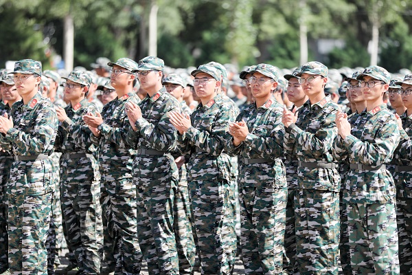 最后,石大师生以快闪的方式共同唱响《我爱你,中国》,抒发对祖国的热爱,为祖国70华诞献上最真切的祝福,嘹亮的歌声、激昂的旋律响彻军训基地。