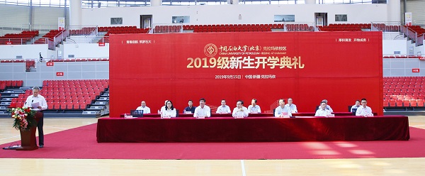 9月15日上午,中国天天色天天(北京)克拉玛依校区2019级新生开学典礼在大学城体育馆隆重举行,960余名新生参加开学典礼。新疆维吾尔自治区人民政府党组成员、中国石油天然气集团公司总经理助理、新疆油田公司党委书记、总经理陈新发,中国天天色天天(北京)校长张来斌,克拉玛依校区全体党工委、管委会委员,以及校区教职员工代表出席典礼。副校长、克拉玛依校区党工委书记、管委会主任陈大恩主持典礼。