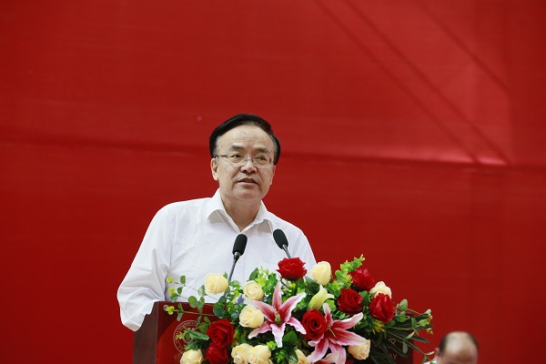 在热烈的掌声中,校长张来斌发表了题为“往深处扎根 向高处成长”的讲话。张来斌首先代表全校师生员工,对新同学的到来表示热烈欢迎,祝愿同学们在美丽的克拉玛依校区实现自己的人生理想!