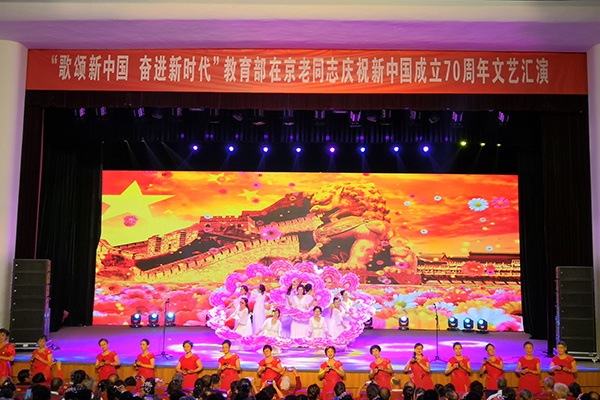 9月19日上午,由教育部离退休干部局主办的“歌颂新中国,奋进新时代”教育部在京老同志庆祝新中国成立70周年文艺汇演在北京邮电大学拉开帷幕。教育部在京直属高校、事业单位等31个老年文艺队伍齐聚一堂,共同呈现精彩演出。
