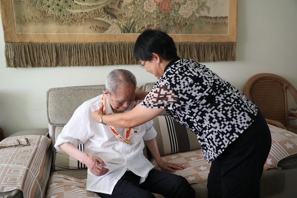 山红红来到中国工程院院士沈忠厚教授家中,亲自为他佩戴上纪念章,向沈院士60多年来牢记使命、淡泊名利,教书育人、科研报国的崇高精神品格表达敬意,祝福他节日快乐,健康幸福。