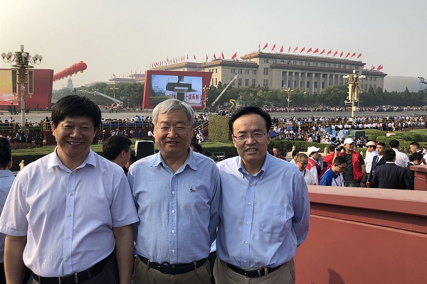 张来斌说,非常有幸时隔十年之后,又一次在观礼台上参加国庆盛典。看到阅兵队伍的威武雄壮,感受着游行队伍的壮观欢快,特别是看到了千余名石大学子行进在“艰苦奋斗”方阵中,不禁心潮起伏,为身处这样伟大的时代而自豪。新中国成立70年来的伟大奋斗,改变了中华民族的前途命运,改变了中国的面貌、中华民族的面貌、中国人民的面貌,使中华民族走向伟大复兴。教育兴则国兴,教育强则国强。实现中华民族伟大复兴的中国梦,归根到底要靠人才、靠教育。时代的召唤是我们前进的动力,我们将以“双一流”建设为契机,秉承“我为祖国献石油”的信念,从人才培养、科学研究、社会服务等方面,全面提升服务国家重大战略需求的能力,为实现“两个一百年”奋斗目标凝聚石大智慧、贡献石大力量。