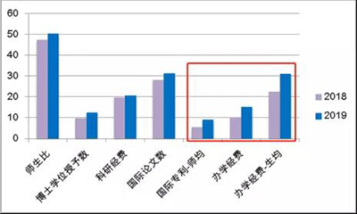 在“软科2019中国两岸四地大学排名”中,中石大位列第54名,较上一年度上升4名,位列中国大陆高校第36名。师生比、博士学位授予数、科研经费、国际论文数、国际专利数、办学经费等分项指标得分均有提升,其中,国际专利-师均、办学经费、办学经费-生均涨幅分别为70.37%、50%、38.67%。