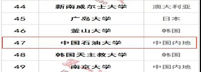 此前,在路透社与科睿唯安(Clarivate Analytics)联合发布的“2019亚太最具创新力大学排名”中,中石大位列亚太地区第47名,中国大陆高校第12名,该排名更加关注在推动科学、发明新技术、推动新市场和新产业方面作出贡献的高校。