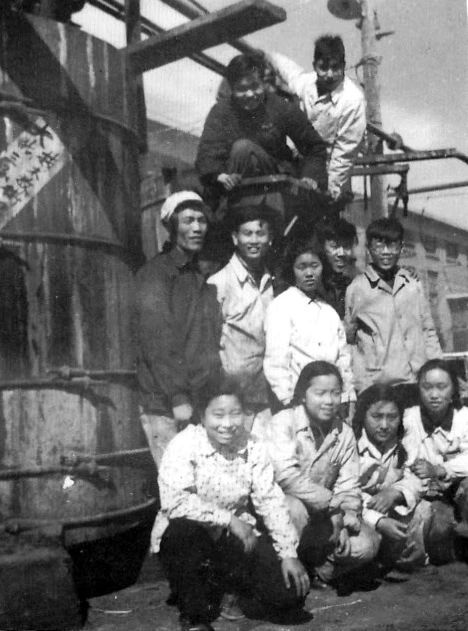1960年参加北京化工厂技术革新的同学与工人师傅合影