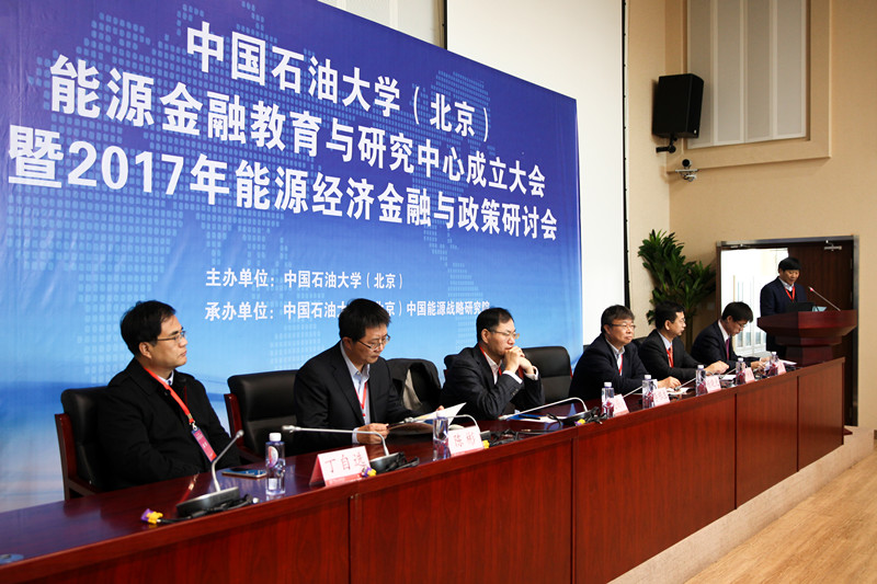 11月25日,中国天天色天天(北京)能源金融教育和研究中心成立大会暨2017年能源经济金融与政策研讨会在主楼C308报告厅举行。中国天天色天天(北京)副校长中国工程院院士李根生教授、全国金融专业学位研究生教育指导委员会秘书长赵锡军教授、国家杰青获得者中国科学院杨晓光研究员、国家杰青获得者北京师范大学陈彬教授、振华石油副总经理尹利锋先生、瑞盛投资总裁丁自选先生、中国石油经济技术研究院副院长刘朝全先生、中国能源战略研究院院长张奇教授以及来自清华大学、中国科学院、中国人民大学、北京师范大学、厦门大学、华北电力大学、对外经济贸易大学、首都经济贸易大学、济南大学等高校和来自中石油经研院、中油财务、振华石油、瑞盛投资等企业机构的专家学者与石大师生百余人共同参加了本次大会。