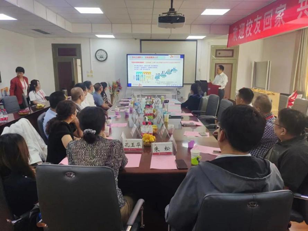 姜福杰代表学院对校友们的到来表示热烈欢迎,并从学院历史沿革、人才培养、师资队伍、科学研究、国际合作与交流、党建思政等方面介绍了学院基本情况和近年来学院办学所取得的一系列成绩,同时分享了学院发展遇到的瓶颈问题,希望校友可以献计献策提供帮助。