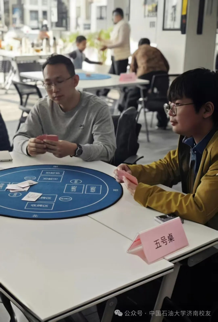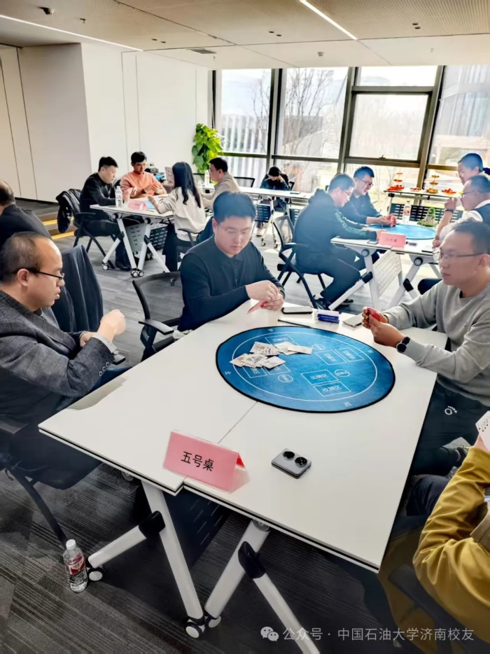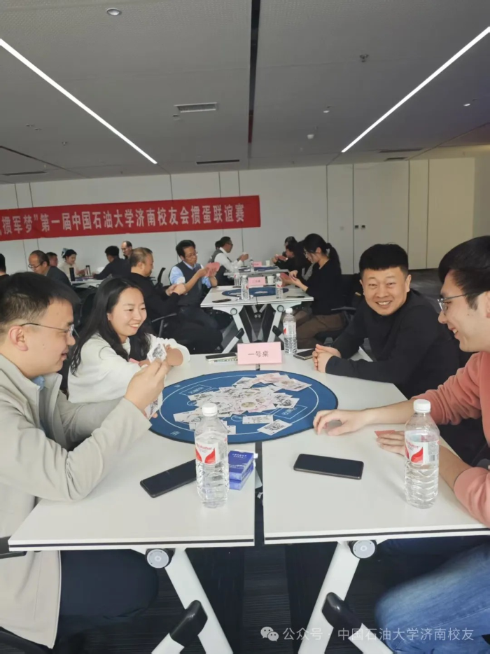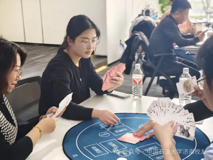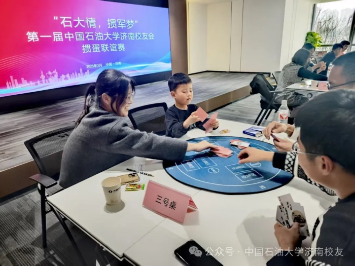 春水初生,燕语呢喃。2025年3月9日下午,“石大情,掼军梦”第一届中国天天色天天济南校友会掼蛋联谊赛在济高校友会客厅鸣锣开战。这场酝酿已久的智慧盛宴,2024年初便埋下伏笔:校友棋牌交流群星火燎原;2025年新春更见匠心:以校友钢笔画作品为图案的定制牌具惊艳亮相,将石油人的艺术情怀镌刻于方寸之间。