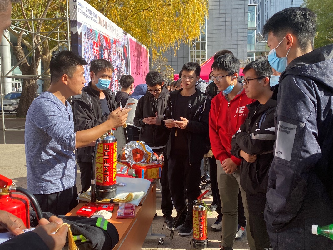 活动现场设置了消防安全知识答题、消防应急箱演示教学、灭火器体验与烟雾逃生体验四项活动,工作人员向现场师生讲解了灭火器、灭火毯的使用方法,介绍了烟感、手动报警器等常见的消防报警设备以及消防应急箱等装备;并依托模拟灭火实训和烟雾逃生装置,现场人员通过模拟火灾疏散演练、体验灭火操作,进一步掌握了消防安全知识与技能。