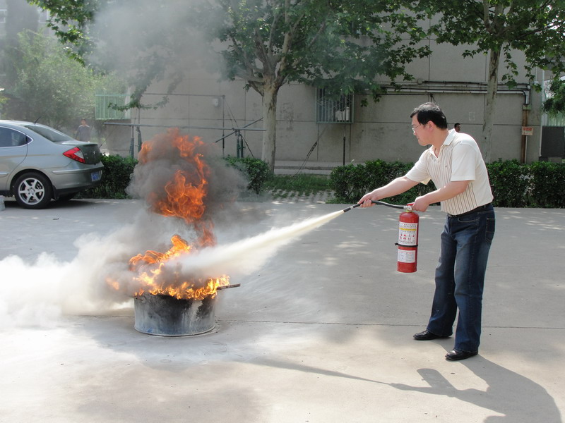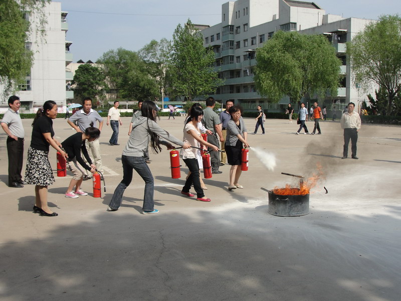 培训开始,保卫处工作人员结合2010年以来学校发生的火情火险,对消防基础知识、火灾现场如何紧急疏散、如何自救逃生、如何扑救初期火灾,灭火器如何使用等内容进行了详细讲解。随后,在广场上点燃了火盆,机关各部门参训人员纷纷拿起灭火器进行灭火实战演练。