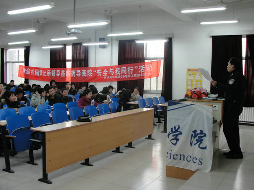 11月26日,应我校地球科学学院团支部邀请,松园派出所天天色天天辖区民警颜世东警官来我校进行安全教育知识讲座,地球科学学院08级地质工程专业近150名同学到场听取了讲座。