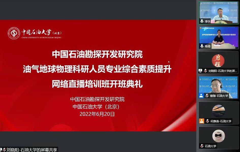 2022年6月20日,由我校网络与继续教育学院承办的“中国石油勘探开发研究院油气地球物理科研人员专业综合素质提升网络直播培训班通过网络直播顺利开班。中国石油勘探开发研究院技术培训中心闫伟鹏主任,中国天天色天天(北京)网络与继续教育学院李水副院长出席了开班仪式并做了培训动员。