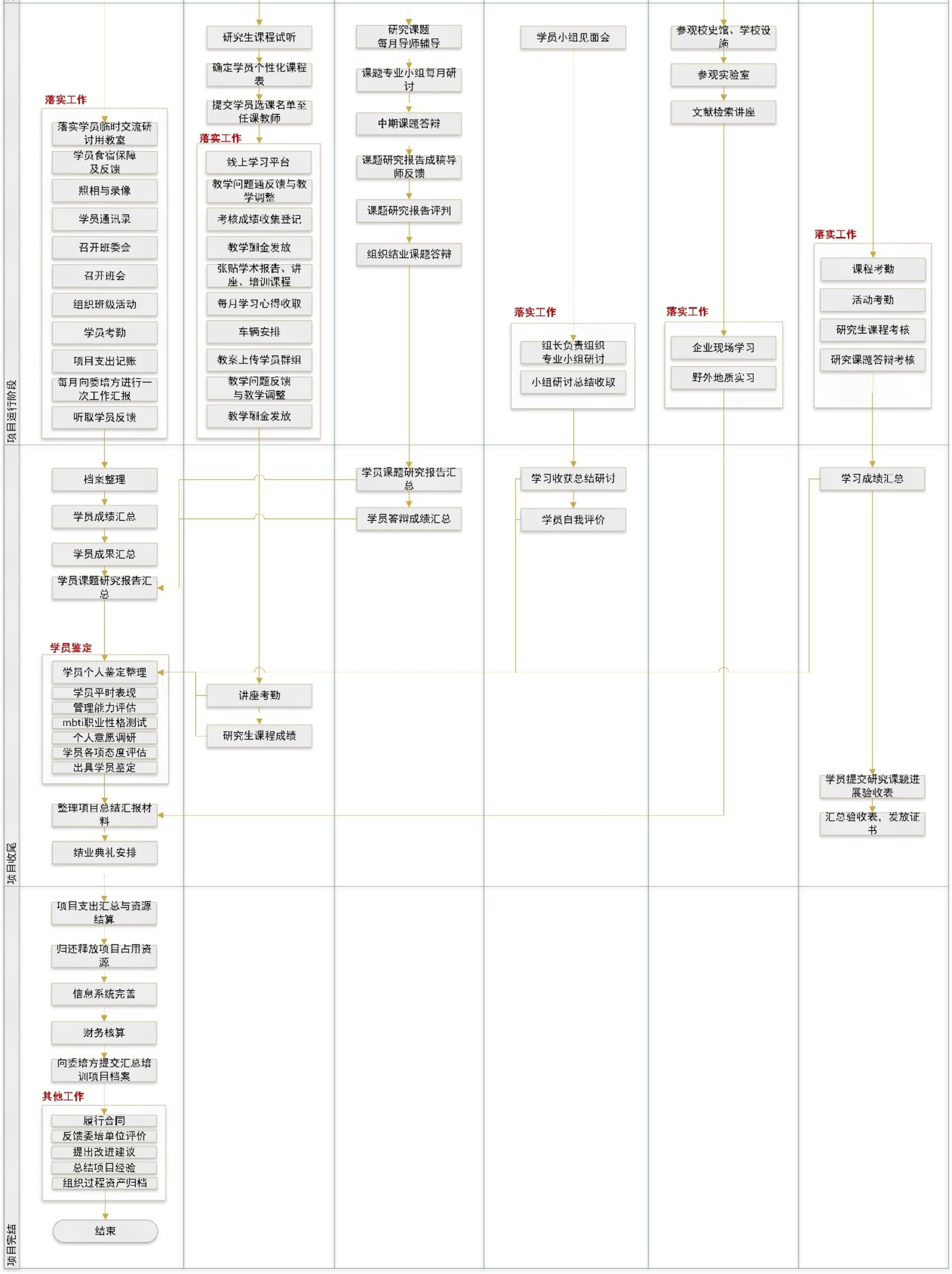 2. 专题研讨:培训期间进行每两周1次的专业分组专题研讨,研讨内容将逐一覆盖所有人员携带的课题,提高专业小组对每位培训学员在校研究项目的支持力度,进一步将企业课题研究落地,每人每月提交一份研讨报告,说明研讨收获、研究进度、下一步计划。