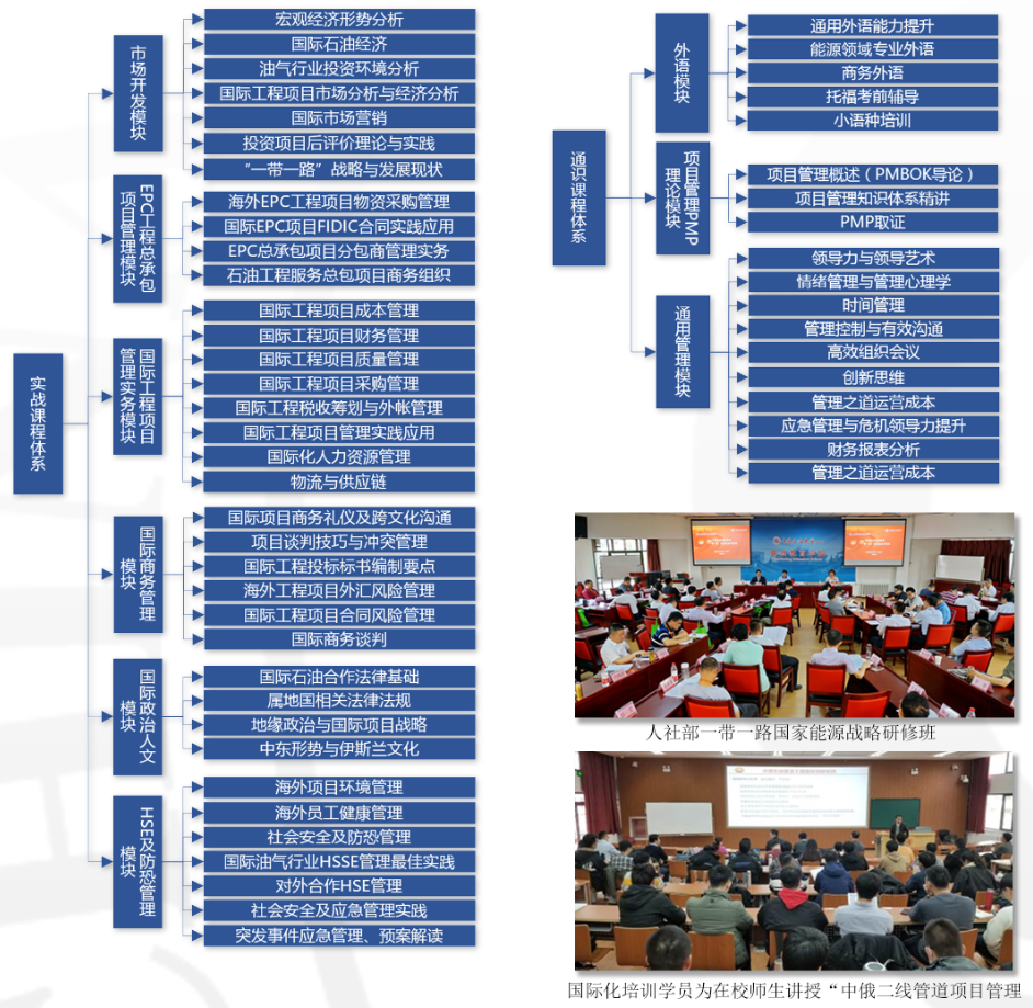 在外联动方面,培训机制充分调动整合了国家有关部门、“一带一路”沿线国家政府能矿部门、石油企业、各相关高校及研究机构等各方人才培养资源和力量,为国际化人才的培养构建了多方联动的资源平台。
