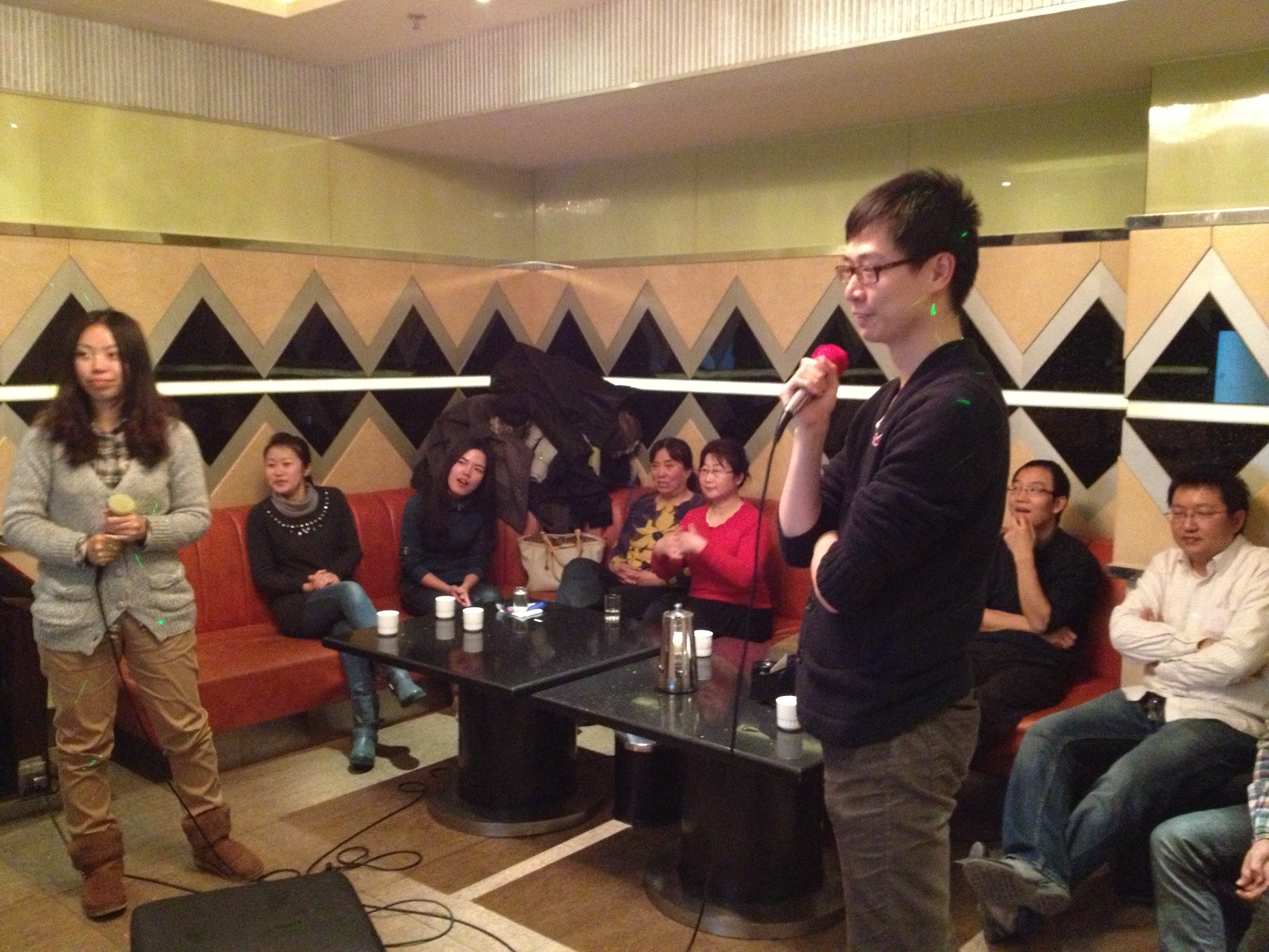 2012年12月11日化工院歌咏协会举办了首次别开生面的“K歌之夜”活动,十几位新老教师一展歌喉,各个身怀绝技,唱出了梦想,唱出了欢乐!本次活动可谓是一场视听盛宴,青春的旋律在这里回转,青春的音符在这里飘扬,青春的梦想在此刻起航!