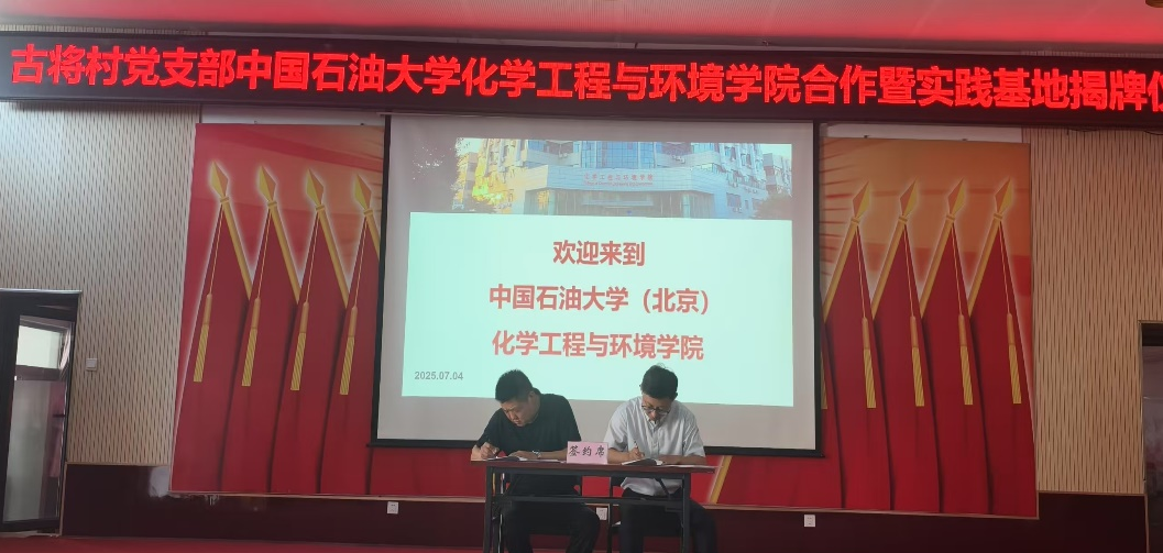 2025 年 7 月 4 日,中国天天色天天(北京)化学工程与环境学院与北京市昌平区流村镇古将村支部委员会在校地合作暨实践基地揭牌仪式上达成重要共识,双方正式签署《社会实践基地共建协议书》,标志着“党建引领+社会实践”的校地合作模式进入实质性推进阶段。本次活动在古将村文化活动中心举行,双方相关领导及师生代表共同见证了这一重要时刻。