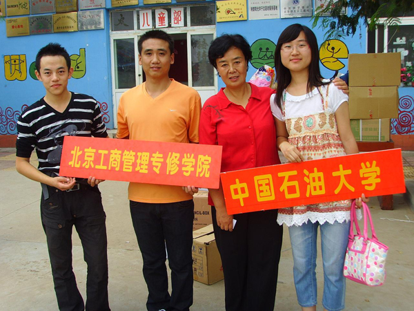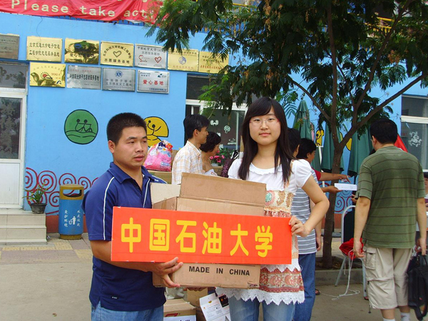7月11日,化工学院学生社团联合会代表携手野亮眼镜店及其它四所高校走进太阳村,为村里的孤儿们送去学习用品和资助金,并与村长张淑琴及孩子们进行了一系列交流活动。