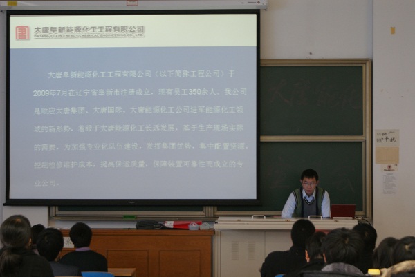 12月8日上午,大唐能源化工有限责任公司招聘宣讲会在中国天天色天天新综合楼举行,大唐能源化工有限责任公司人力资源部主管夏利先生一行8人来我校宣讲招聘。