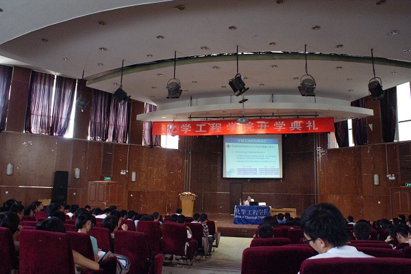2011年8月22日下午,化学工程学院本科生开学典礼暨新生入学教育在科学会堂顺利举行。化工学院院长高金森,党委书记郭绪强,党委副书记胡建茹以及各院系辅导员出席了开学典礼。