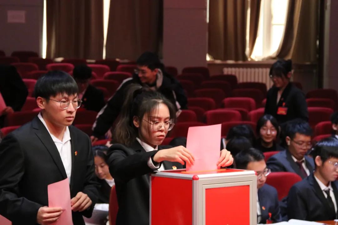 学院团委书记李文倩向大会作报告。报告中详细介绍学院过去五年的主要工作和成绩。过去五年里,学院团委聚焦青年思想政治引领,坚持围绕中心服务青年,坚持夯实组织建设,推动落实改革,不断增强基层团学组织的凝聚力和战斗力。在新的征程新的使命召唤下,学院团委将继续强化思政引领,加强组织动员,健全工作平台,服务学生成才。团结学院全体青年,凝心聚力,努力谱写学院共青团事业新篇章。