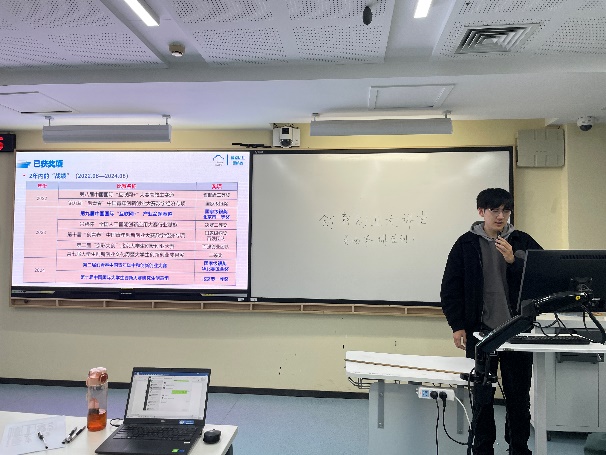 祝兆鹏老师讲述了目前国内在钻完井领域为了突破科技封锁、实现科技自立自强所进行的努力和取得的成果。硕士研究生王一帆分享了本届中国国际大学生创新大赛的备赛和参赛经验。祝老师表示,同学们正逢青春年少、创新思维迸发的大好时期,要敢于创新、敢于突破,将创意落到实地,争取让它开花结果;同时也要紧跟时代,积极合理的利用人工智能帮助自己提高学习工作效率,用人工智能的思路改变生活,成就自我。