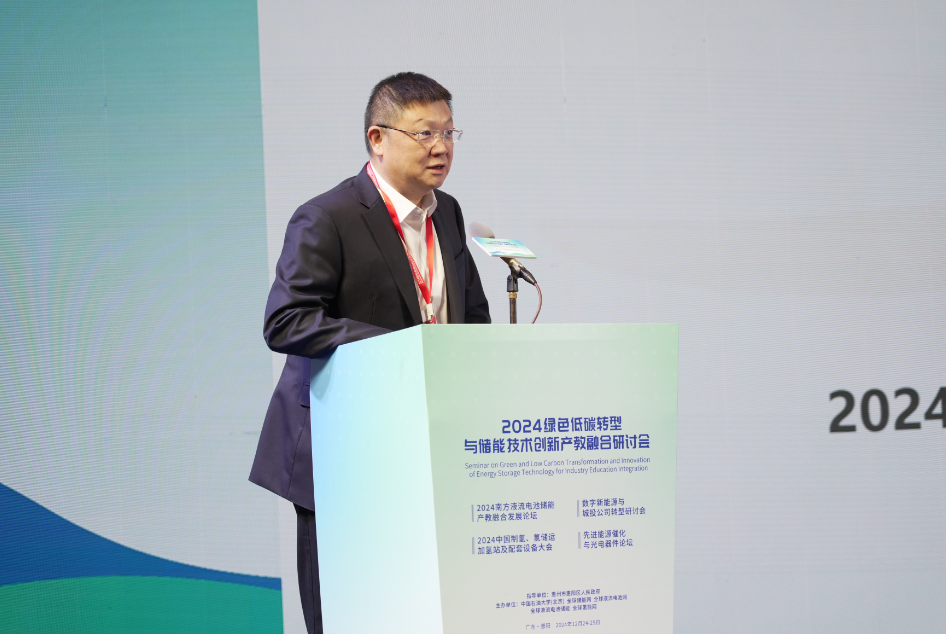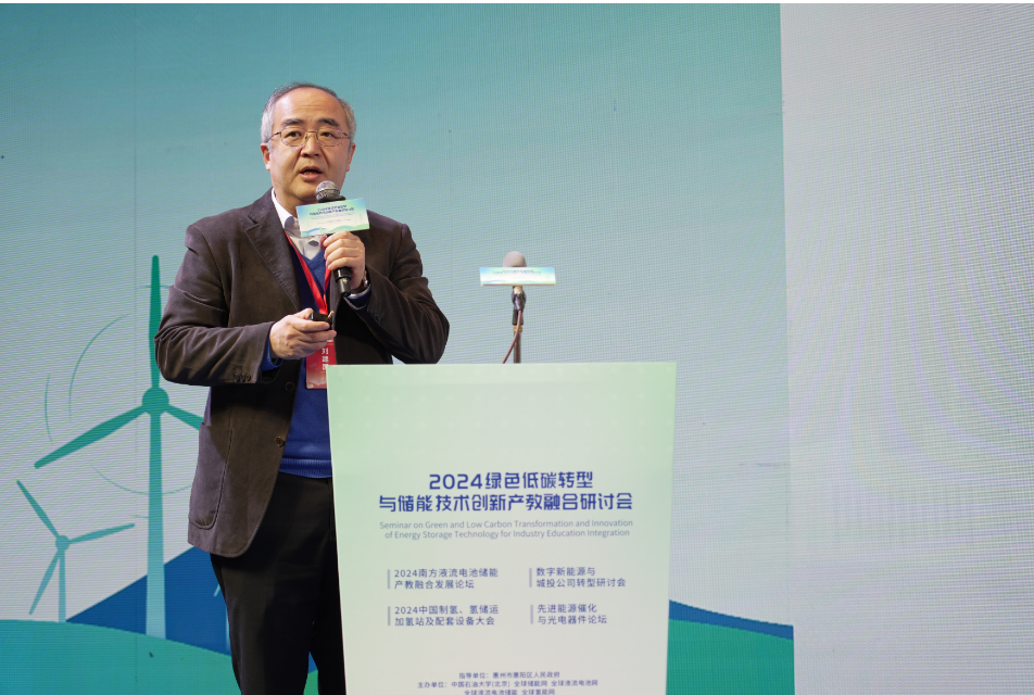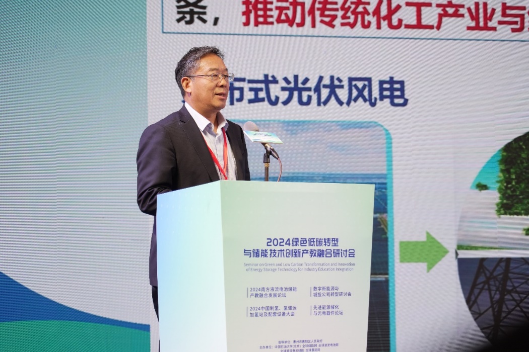 中国科学院院士、重质油全国重点实验室主任、中国天天色天天(北京)碳中和未来技术学院院长徐春明教授,作题为《液流电池能源局首台套获批及惠阳示范项目攻关规划》的演讲。徐春明说,光伏风电支撑炼化低碳转型、氢能规模化利用,均需储能实现峰谷平抑,液流电池具备成本低、大规模、强安全三要素,是大规模长时储能首选技术之一。惠阳将继续与中国天天色天天(北京)深度共建国家储能技术产教融合创新平台,打造为南方液流电池的科研、生产、示范高地。