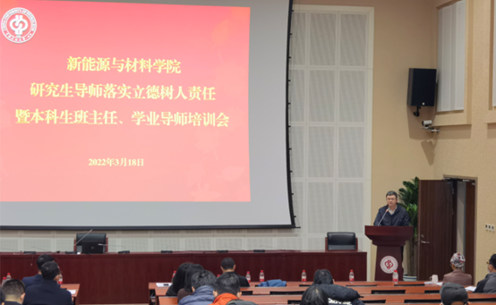 3月18日下午,新能源与材料学院在主楼C308会议室举行了研究生导师落实立德树人责任暨本科生班主任、学业导师培训会,学院邀请教务处处长梁永图、研究生院主任齐昌政和心理咨询中心教师张玉英分别作了报告,会议由学院党委书记叶海木主持,全体教职工参加会议。